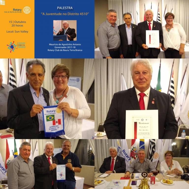 O Rotary Club de Marília de Dirceu recebeu nesta terça-feira o Governador 2017-18 Maurício de Agostinho Antonio que ministrou uma palestra com o tema “A Juventude no Distrito 4510” aos rotarianos do clube.