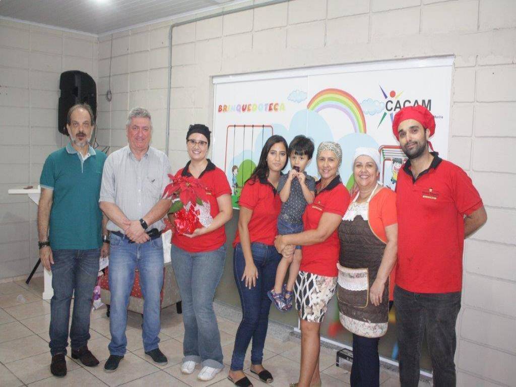 O Centro de Apoio a Criança e Adolescente de Marília (Cacam) realizou na noite da última sexta-feira, uma confraternização de Natal para as crianças acolhidas, funcionários, familiares, além de autoridades municipais, rotarianos e do poder judiciário. O evento visa reunir de forma festiva Hederaldo Benetti e esposa Patrícia todos os envolvidos na proteção das crianças que estão temporariamente sob a tutela do Estado.