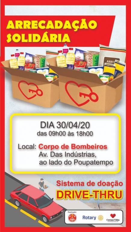O Rotary Club de Marília de Dirceu participando da segunda “Ação Solidária” no sistema de doação DRIVE-THRU, em parceria do o corpo de Bombeiros.