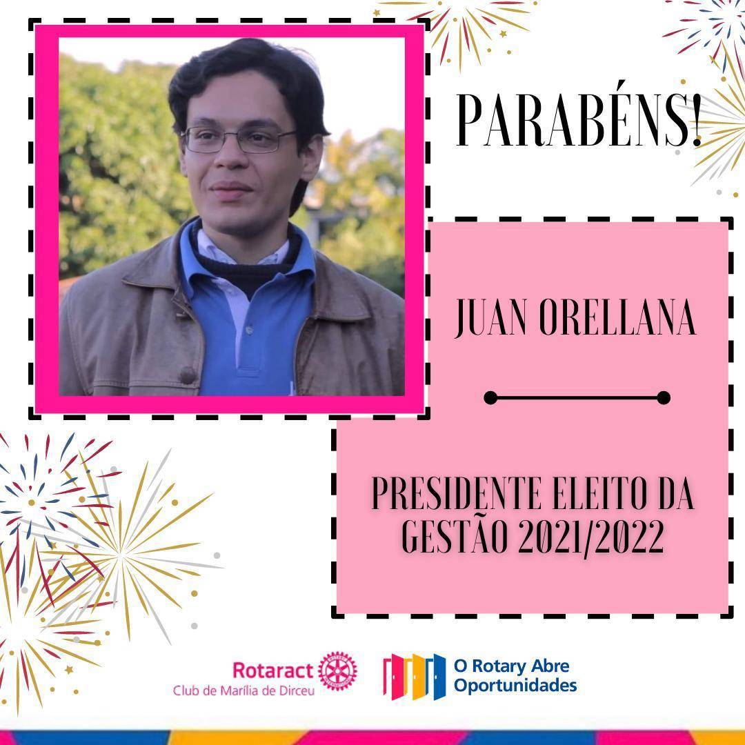 Internacionalista Juan Ricardo dos Santos Orellana é eleito o próximo presidente do Rotaract Club Marília de Dirceu para a gestão 2021/2022.