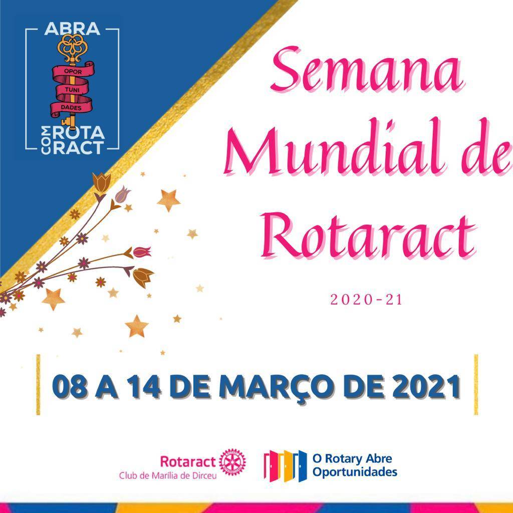 A Semana Mundial do Rotaract deste ano tem o foco a comemoração dos 53 anos de existência do Rotaract. Durante os dias 8 a 14 de março de 2020, diversas ações acontecem com o intuito de divulgar, fortalecer, e fomentar a divulgação das atividades do Rotaract e seus principais projetos para a comunidade, disseminando assim informações importantes para a imagem pública deste clube para o mundo!