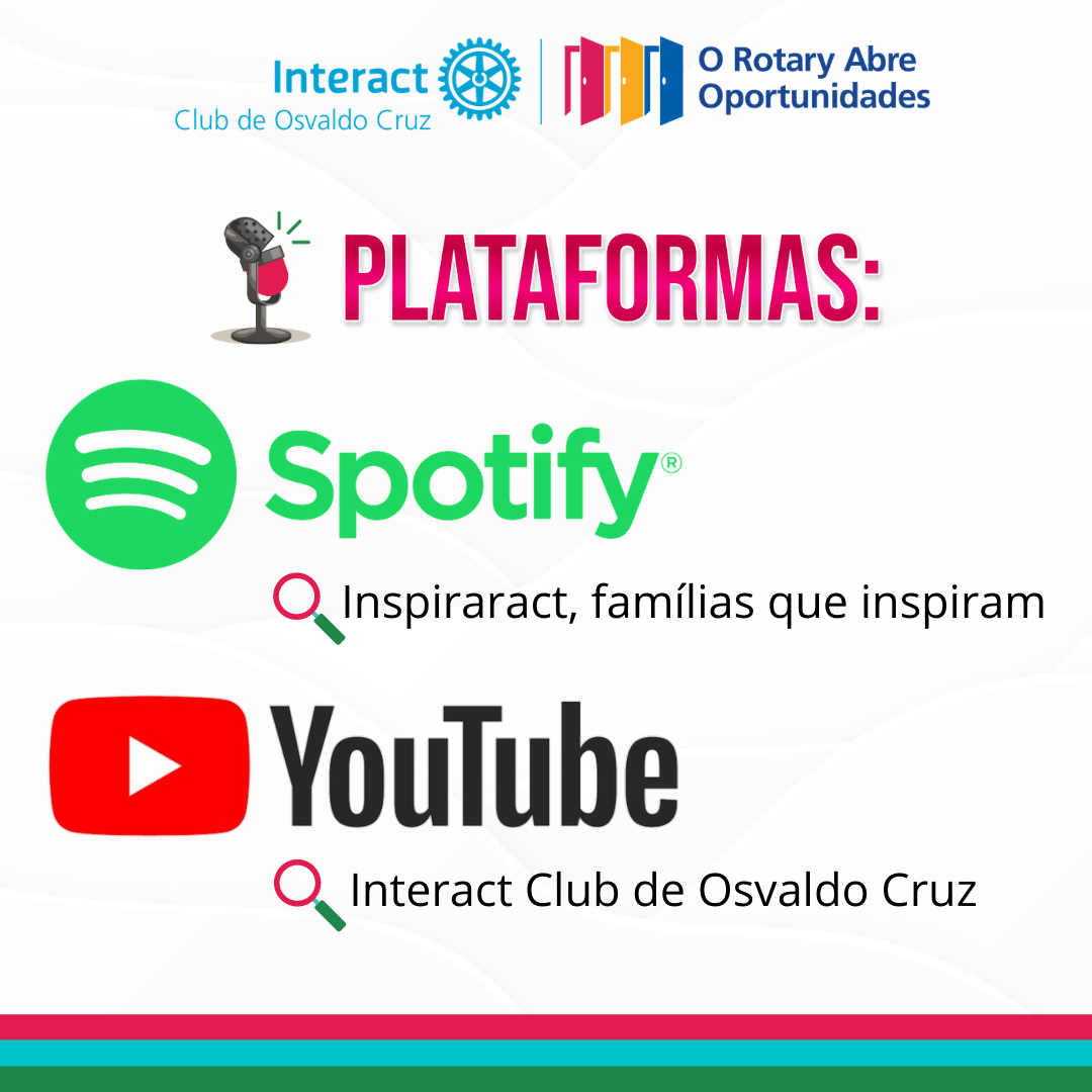 Com o intuito de falar mais sobre o que é a família Rotária, apresentando o ponto de vista de alguns associados do clube, o Interact Club de Osvaldo Cruz promoveu o Podcast trazendo além dos associados, convidados especiais como o Governador Nestor, Guilherme Ísfer, entre outros. Já conta com quatro episódios que vale a pena ouvir. Já está disponível no YouTube e Spotify.