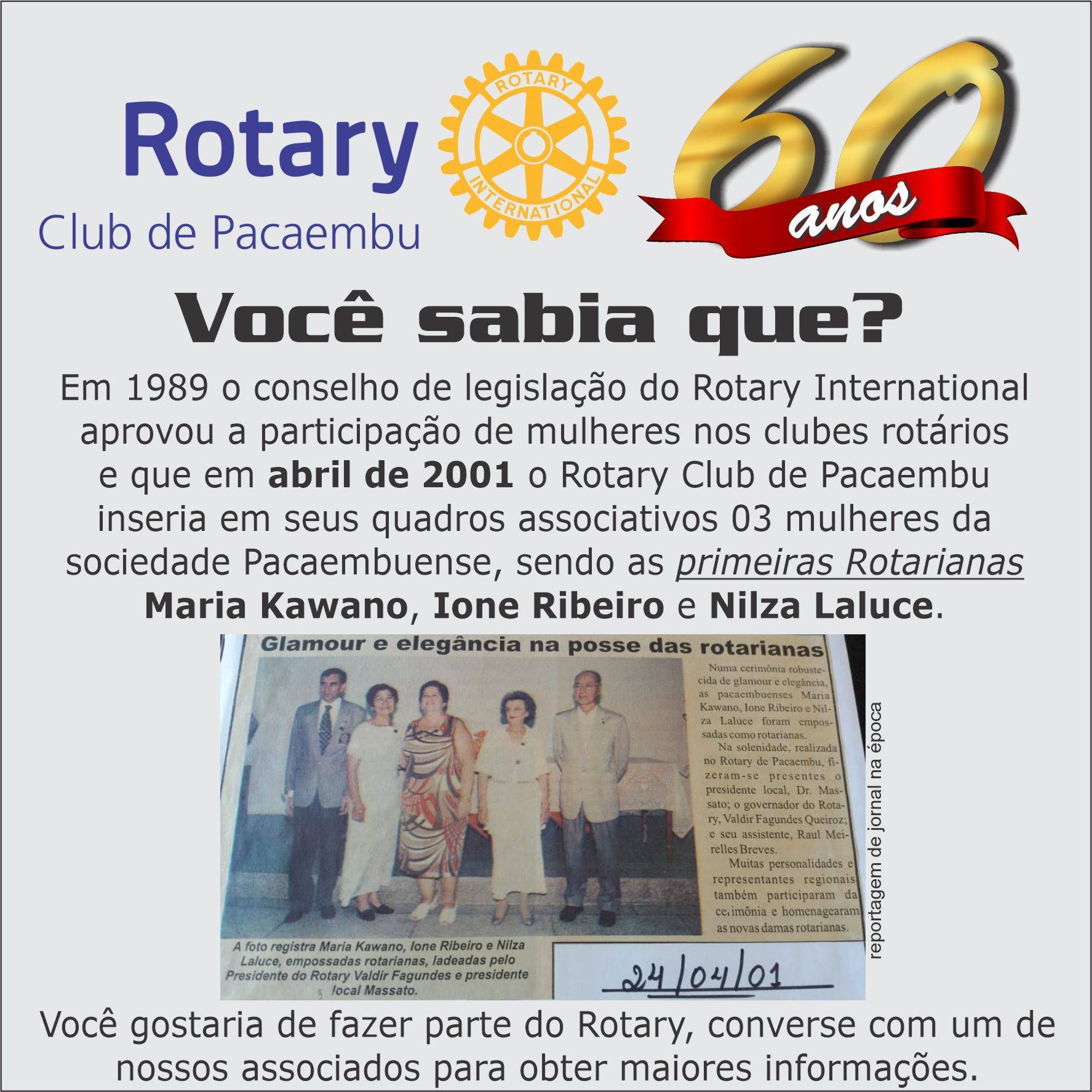 Mulheres passaram a fazer parte do Rotary Club de Pacaembu em abril de 2001