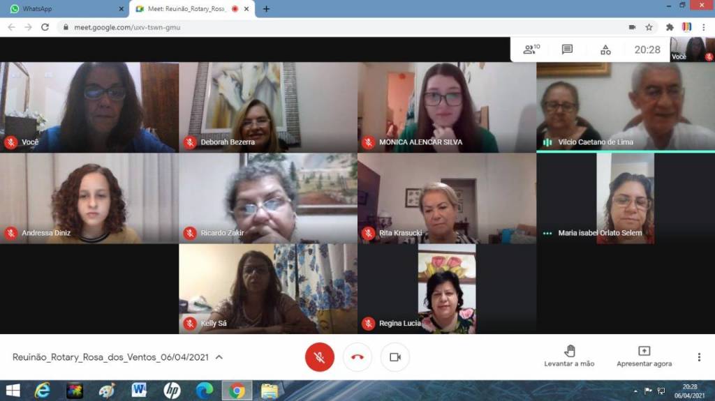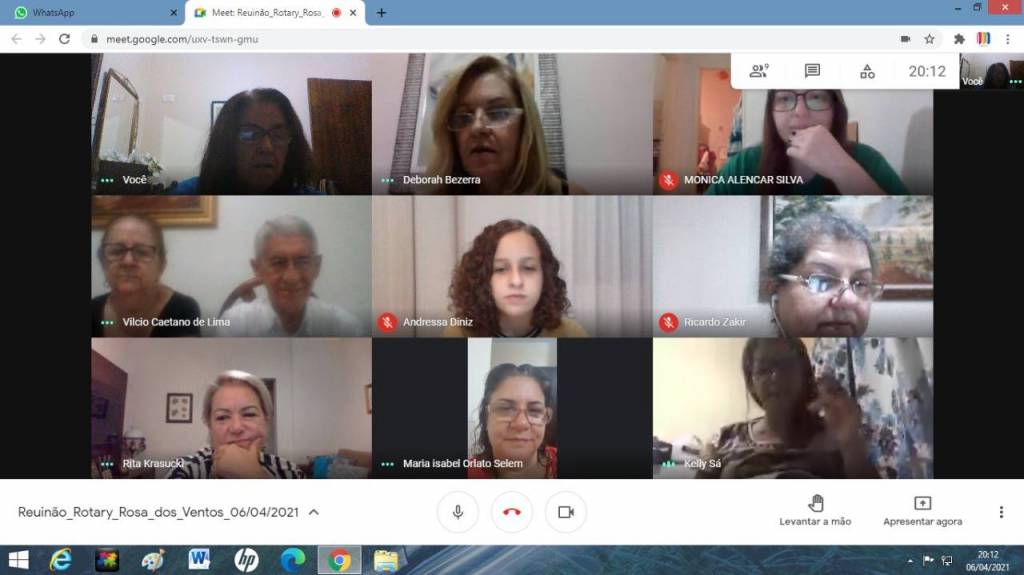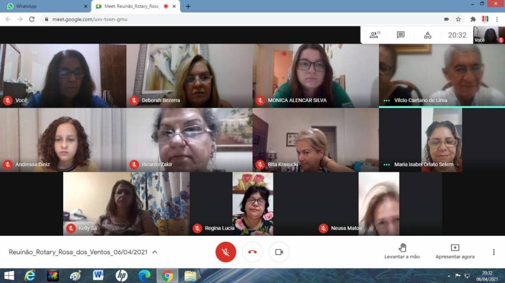 Reunião do dia 06-04-21 tivemos palestra do Gov. 2014/15,nosso Associado honorário Vilcio Caetano de Limasobre a sua trajetória em Rotary. Tivemos as visitas: Gov. 2014/15 Vilcio Caetano de Lima, Monica Alencar silva, Presidente Interact PP Leste Andressa Felisberto Ferreira Diniz, Maria Isabel Orlato Selem, Regina Lucia Bertani, Ruth Kunzli.