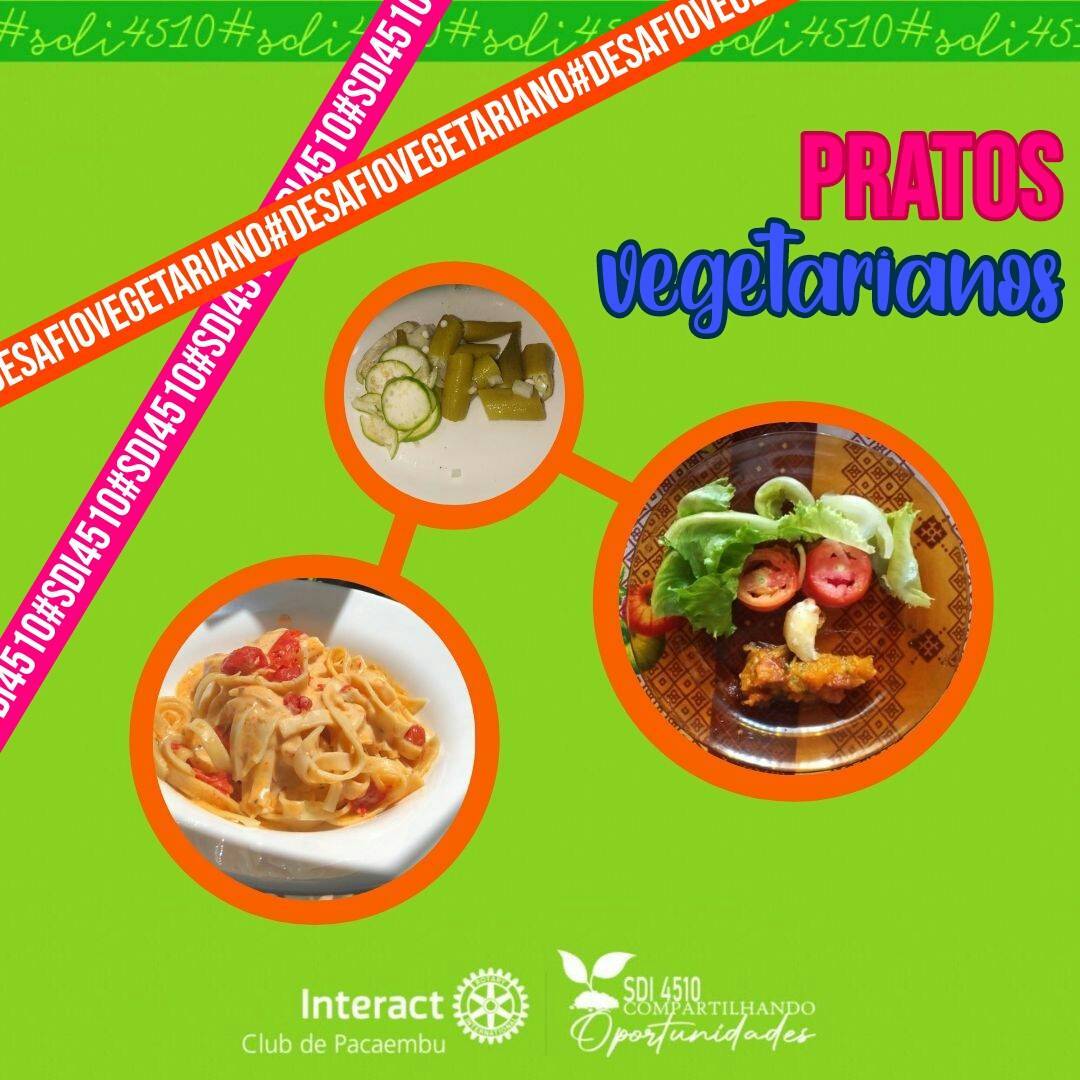 No segundo dia da Semana Distrital do Interact, abordando o tema: Desafio Vegetariano, deveríamos postar fotos, ou outras diversas formar de mostrar uma refeição do nosso dia livre de carne animal. Nossos associados arrasaram nesse dia e nos surpreenderam muito, vários pratos incríveis e criativos
