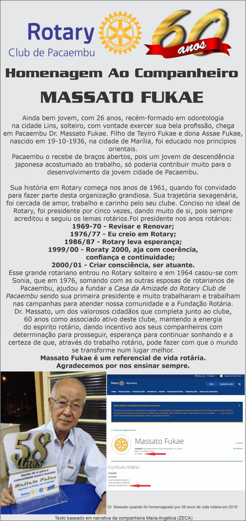 DR. MASSATO FUKAE, 60 ANOS ASSOCIADOS AO ROTARY, UMA VIDA DE SERVIÇOS VOLUNTÁRIOS