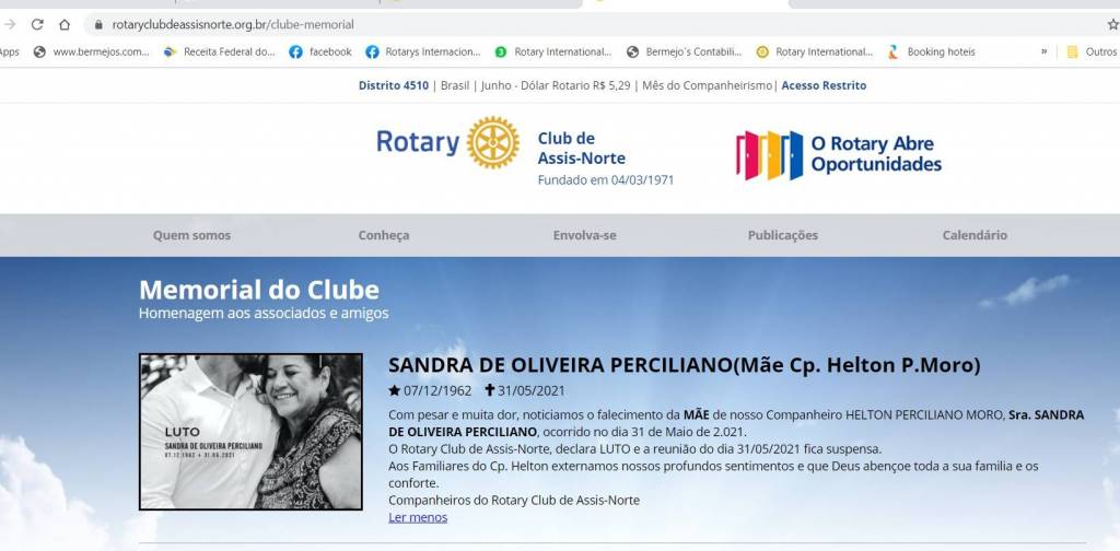 O Rotary Club de Assis-Norte, declara LUTO e a reunião do dia 31/05/2021 fica suspensa.