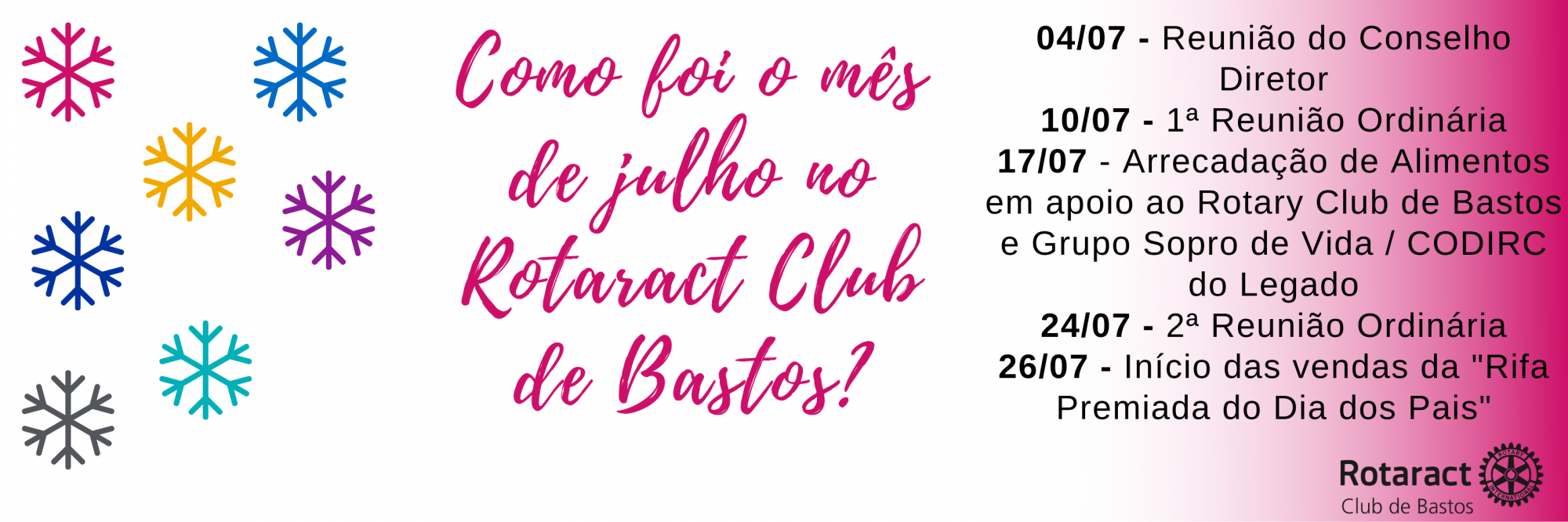 17/07 - ajudamos a arrecadar alimentos, em apoio ao projeto desenvolvido pelo Rotary Club de Bastos e Grupo Sopro de Vida. Neste dia, também tivemos a CODIRC do Legado!