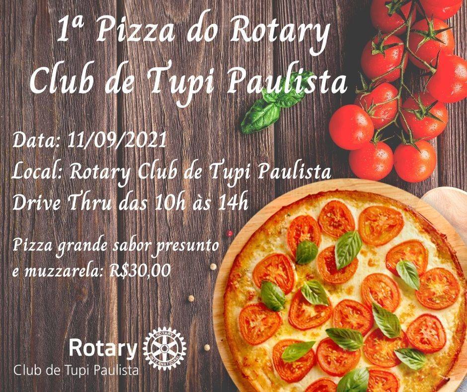No dia 11 de setembro, das 10h às 14h, acontecerá 1ª Pizza do Rotary Club de Tupi Paulista. A entrega acontecerá na sede do clube em sistema thru e os vales pizza podem ser adquiridos antecipadamente com os rotarianos.
