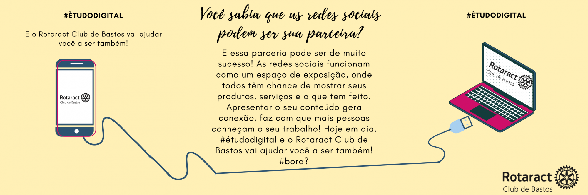 Durante os próximos dias, o Rotaract Club de Bastos irá trazer uma série de lives em nossa página do Facebook e através do Aplicativo Zoom, onde vamos tratar do assunto e te ajudar a se posicionar de maneira efetiva na internet! Hoje em dia, #ÉTUDODIGITAL, bora ser também?