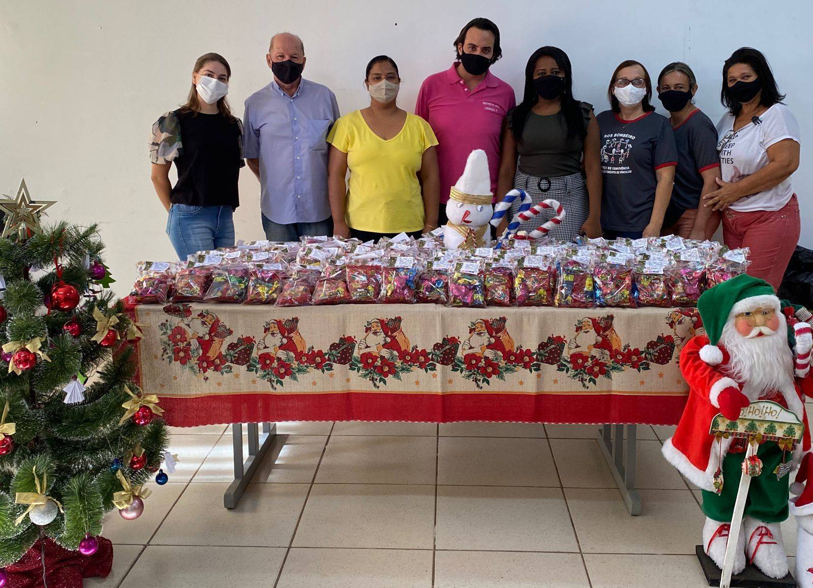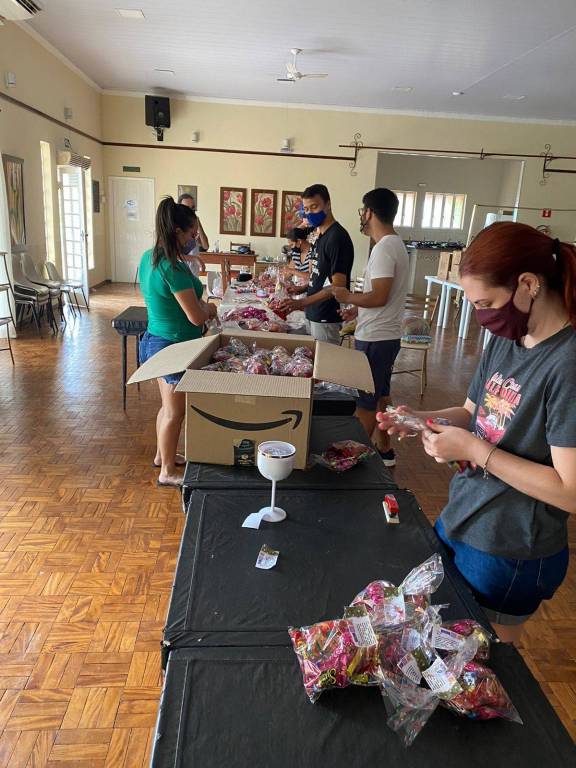 As sacolinhas foram montadas pelos membros do clube com doações dos seguintes parceiros: Supermercado Bandeiras, Doces Fantin e Mesquita Embalagens Festas.